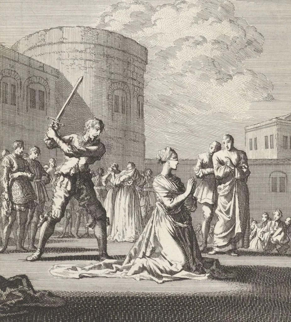 The execution of Anne Boleyn, by Jan Luyken, 1699. Rijksmuseum. Public Domain.